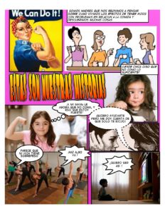 Era muy importante para nosotras compartir nuestras ideas con otros grupos de mujeres, por lo que al final del taller elaboramos un cómic, el cual serviría como testimonio para presentar lo que descubrimos en el taller. Este trabajo se encuentra aquí:
