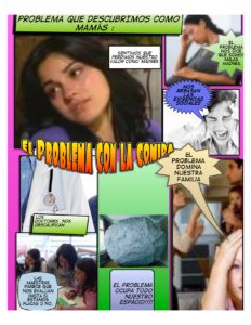Comenzamos por explorar el problema: hablaban de sentirse rebasadas, sin salida, o aisladas y de cómo, aún así, había algo dentro de ellas que les permitía ver que el medio cultural en el que vivimos tenía que ver en mucho con esta sensación. Lo que sabían y lo que vivían como madres era reemplazado por el “conocimiento experto”, por lo que la primera parte consistió en externalizar el problema con el fin de separarse del mismo y poder hablar de sus efectos. Lo nombramos El pleito con la comida. A partir de que nombramos al problema, la intención fue exponerlo y desenmascararlo, ver los métodos que utiliza para oprimir, atacar, devaluar, etc., conocer los mensajes que manda para engrosar su argumentos y los supuestos no analizados que lo sostienen, buscar las excepciones de su influencia, y así encontrar estrategias o acciones que hicieran diferencia en la manera de vivir con él para ver si podíamos liberarnos un poco de la saturación del problema. En este momento, para mí era claro que debíamos honrar lo que como mamás sabemos, y que a veces está enterrado por el contexto social en el que estamos, y cómo exigencias sociales nos restringen imponiendo un tipo de femineidad y de la forma “ideal” de ser mamá. Mi intención era que el grupo expusiera sus conocimientos como madres, que son conocimientos basados en su experiencia cotidiana, y que han sido descalificados y desplazados por los conocimientos de los “expertos en el área” como podrían ser las escuelas, los pediatras, etc. Decidimos declarar cual era nuestra posición ante el problema: vivimos en un grupo social que promueve la unificación y discrimina las diferencias, lo que hace muy difícil para nosotras no sentirnos sobre exigidas en cuanto a cómo vamos a educar a sus hijos y qué valores van a fomentar en ellos. Todas nos dimos cuenta de que no queremos meter a nuestros hijos en patrones estereotipados, reconocemos que no se privilegia el quién eres en totalidad, si no que se venera el cómo te ves. Sin embargo, nosotras hemos caído en las sobre-exigencias de estereotipos y hemos promovido esas prácticas al tener un cierto estilo de vida. Tenemos la idea de que estar flaco es sinónimo de saludable y estar gordo es sinónimo de enfermedad. Como madres somos expertas en crear toda una serie de estrategias abiertas y ocultas para hacer que nuestros hijos entren en nuestra agenda, luego nos sentimos mal porque nos damos cuenta de que son expectativas que no son nuestras si no socialmente construidas y eso nos crea un sentimiento de culpa. Los rasgos de los modelos físicos están asociados a atributos que quisiéramos que nuestros hijos tuvieran, por lo que nos creemos incapaces de promover esos atributos imaginarios porque ni siquiera nacen de nuestros valores. Vimos cómo en las escuelas se legitiman ciertos perfiles maternos, que tratar de cumplirlos nos genera un sentimiento de inadecuación, que socialmente existen criterios de normalización de lo que debe ser una mamá y esto contribuye a las ideas de “buenas y malas madres”. Resulta muy difícil reconocer que la manera en que nos aproximamos al problema de nuestros hijos es a través de nuestra saturación del problema. Además de que nos sentimos responsables de la totalidad del problema y esto nos restringe en la manera de actuar.